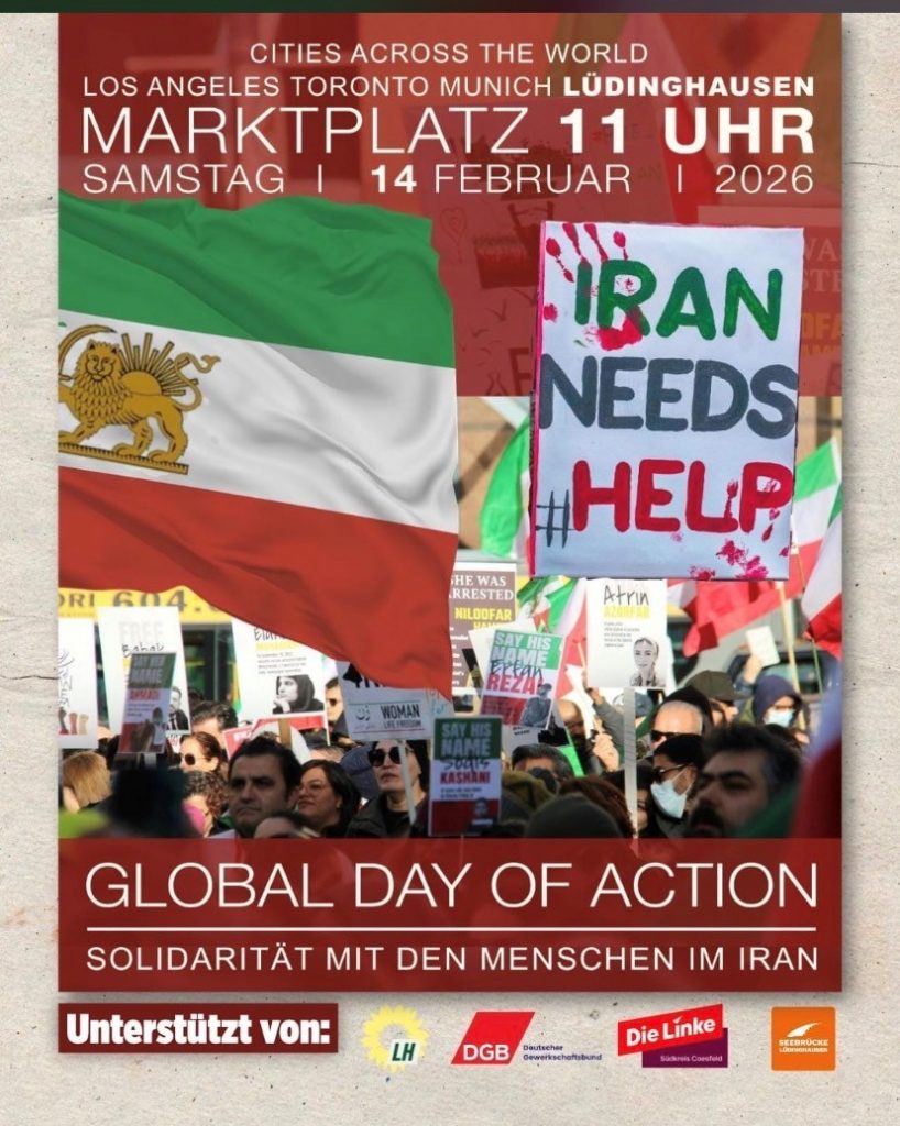 Zeigen wir gemeinsam Solidarität mit den Menschen im Irak und mit den Iranern, die hier in Deutschland und in Lüdinghausen leben! Sei dabei am Samstag, 14.02.2026 um 11:00 auf dem Marktplatz in Lüdinghausen!